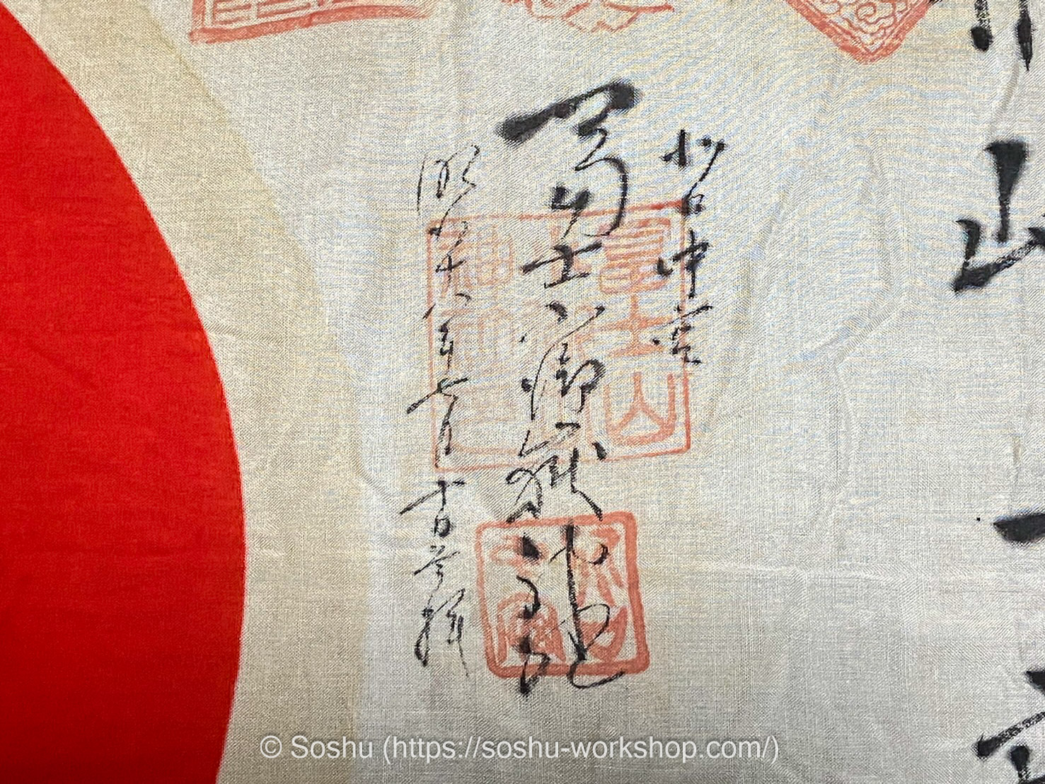 - The date of visit recorded on the other Good Luck Flag, July 10, 1943 (Showa 18), also coincides with the timeframe.