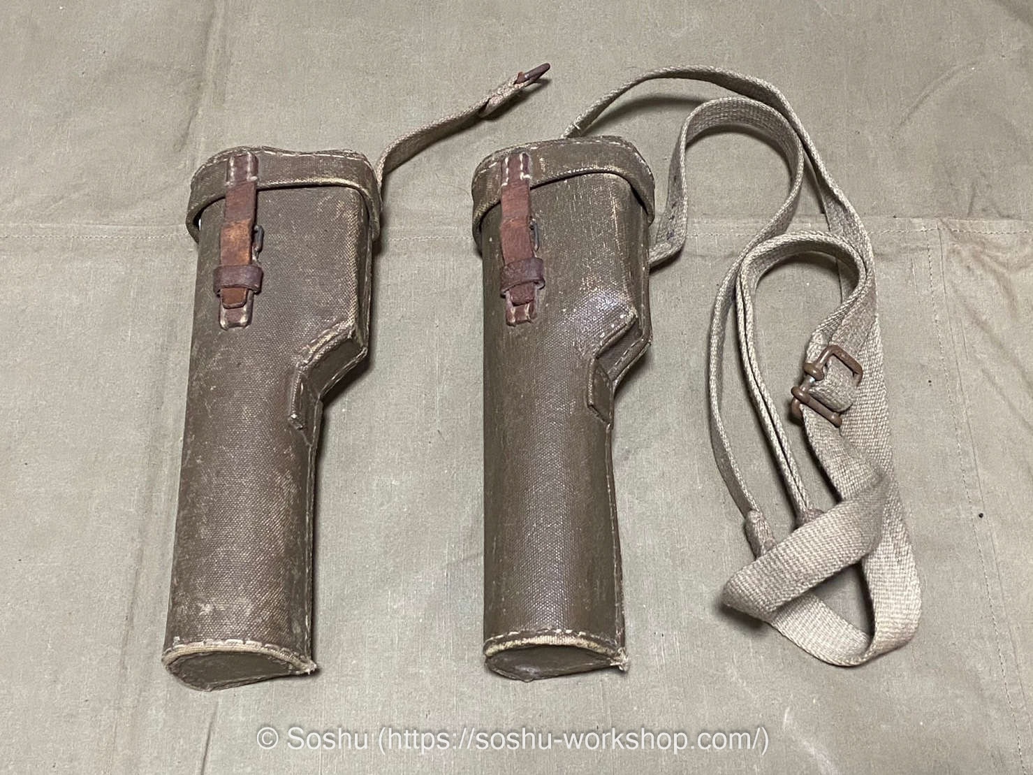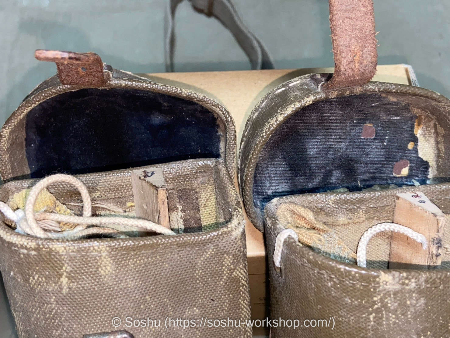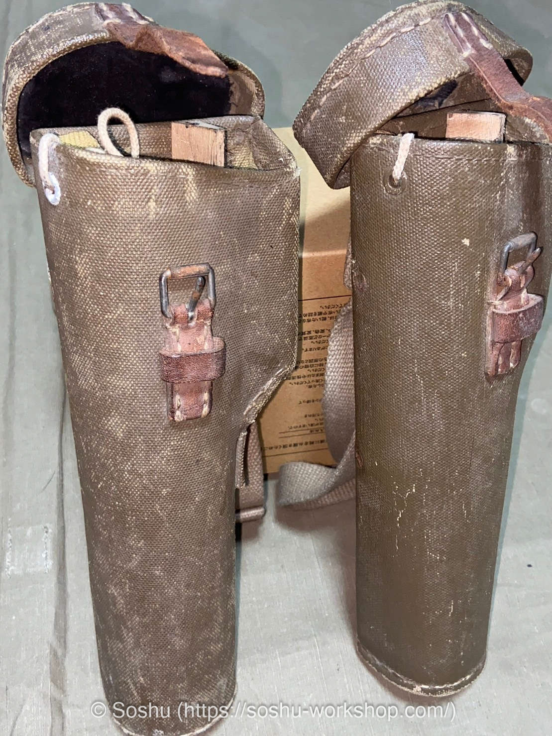 As you can see, the carrying case on the left is missing its shoulder strap. The one I’m offering this time is the one with the missing strap. However, the buyer is skilled at creating intricate replicas, and he plans to recreate the shoulder strap himself.