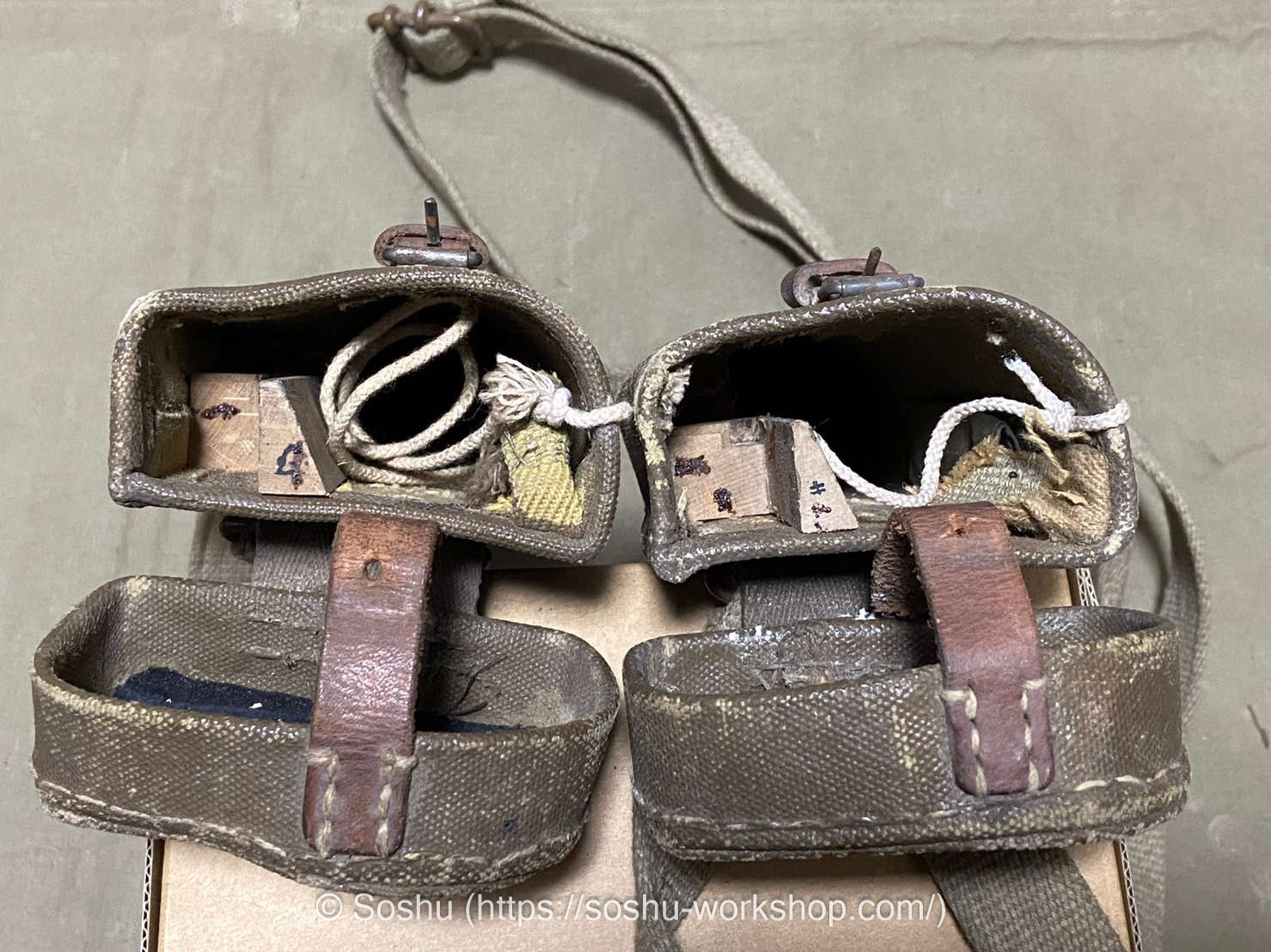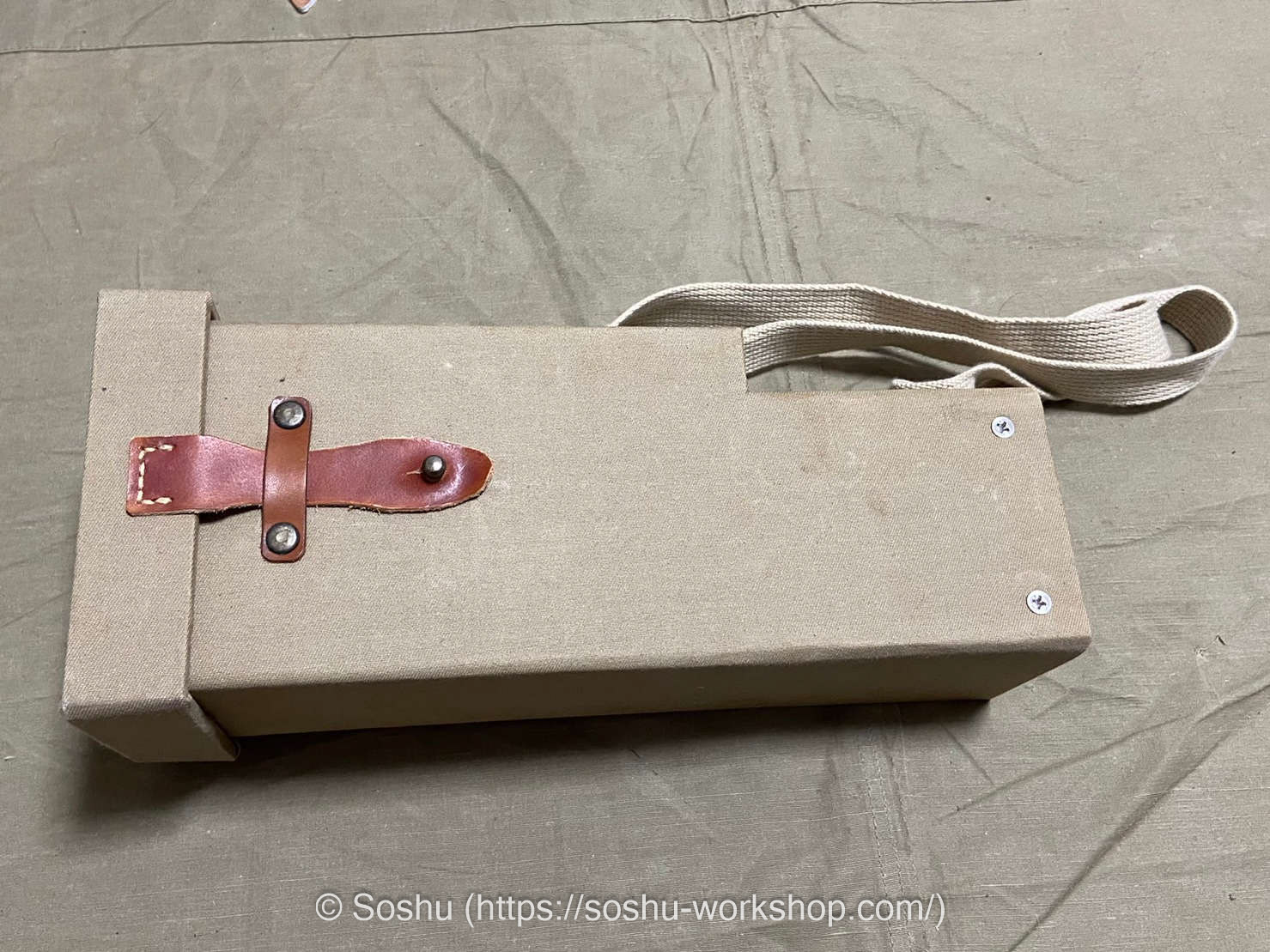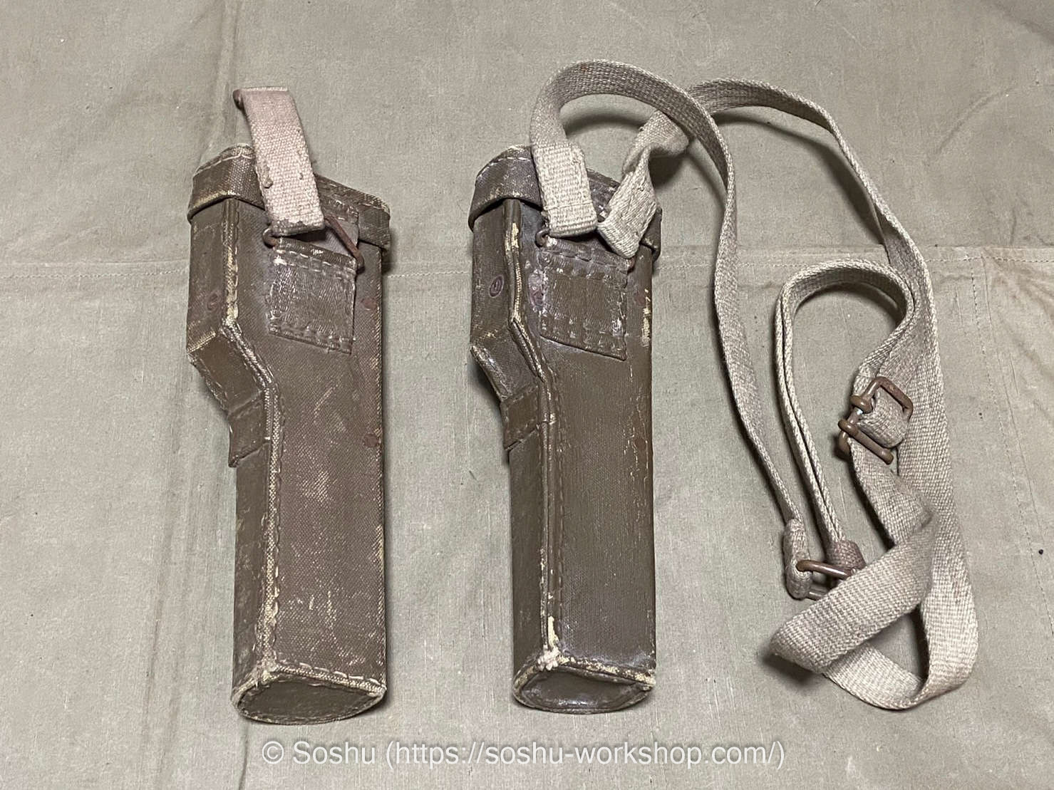 As you can see, the carrying case on the left is missing its shoulder strap. The one I’m offering this time is the one with the missing strap. However, the buyer is skilled at creating intricate replicas, and he plans to recreate the shoulder strap himself.