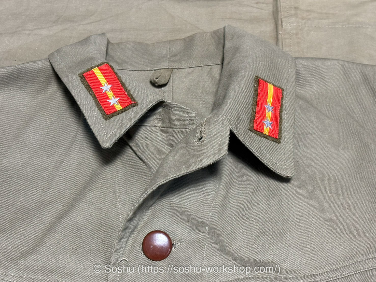 まず、昭和5年制防暑衣は、昭和五式軍衣と同様に鍬形の襟章を付け、開襟状態にすることができます。階級章は肩に佩用します。