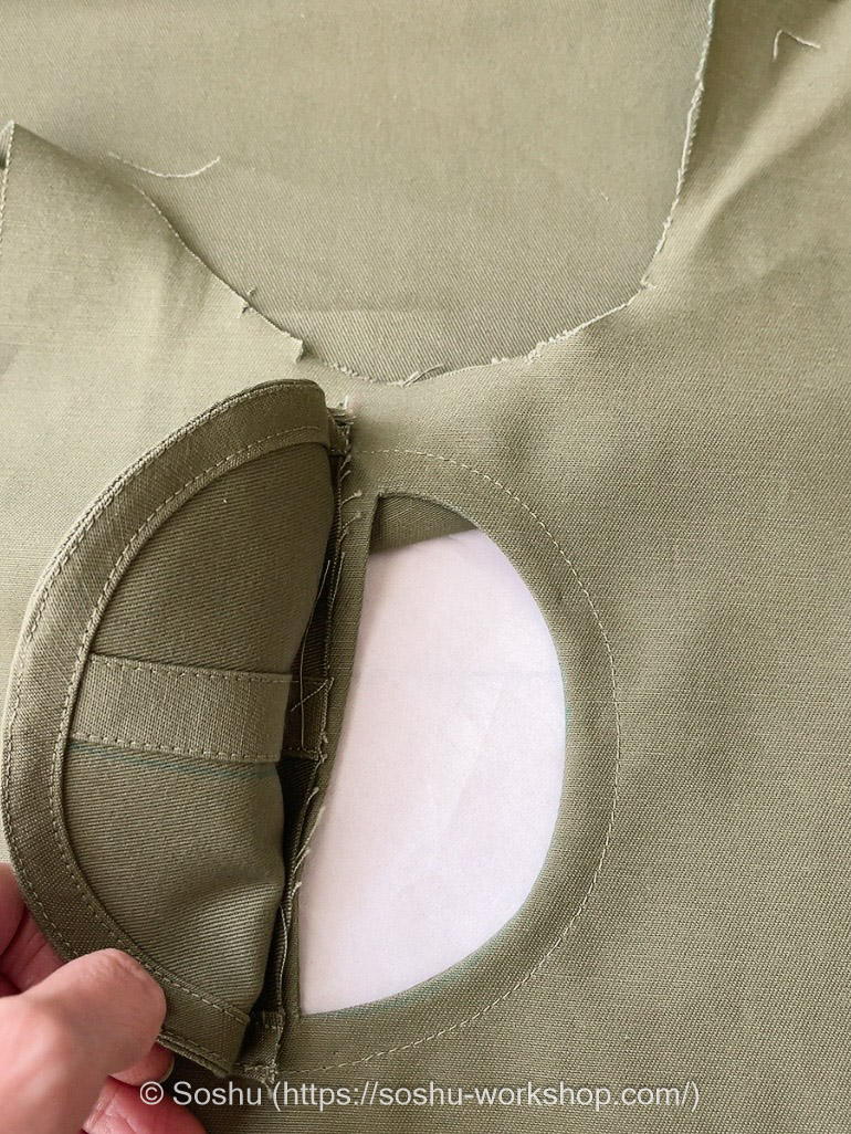 脇の通気孔の蓋は、かなり複雑な縫い方がされており、再現には相当苦労したそうです。